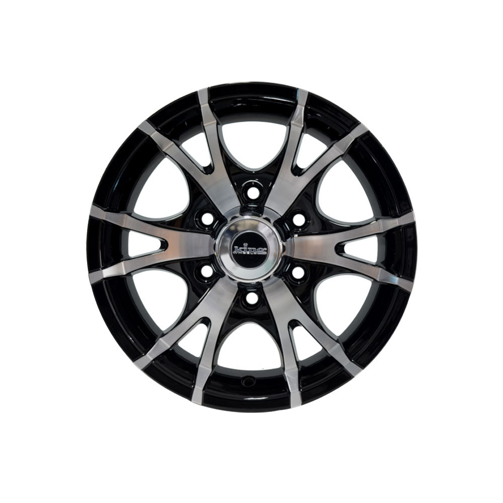 KING KT-6 is the traditional 6 spoke trailer design with a machined face and cut back lip. Features include heavy-duty load carrying capacity and dome style centre cap.